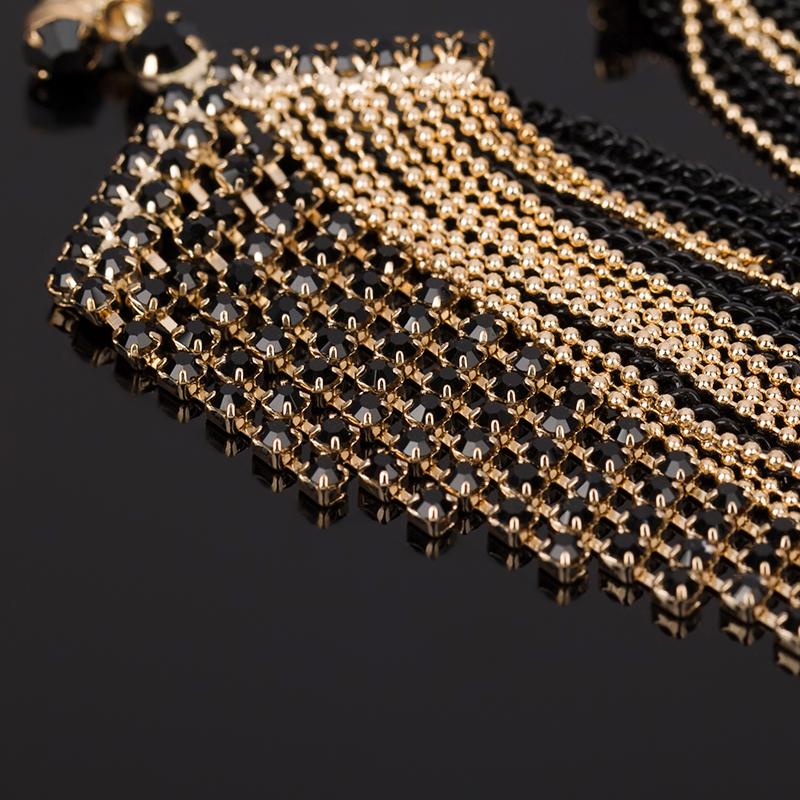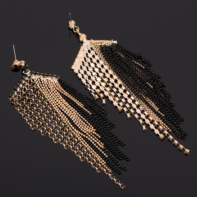 This black large tassel earrings are a perfect fit to any long evening gowns. The Rhinestone material will give more a stunning look at the party. It is uniquely beautifully with its...